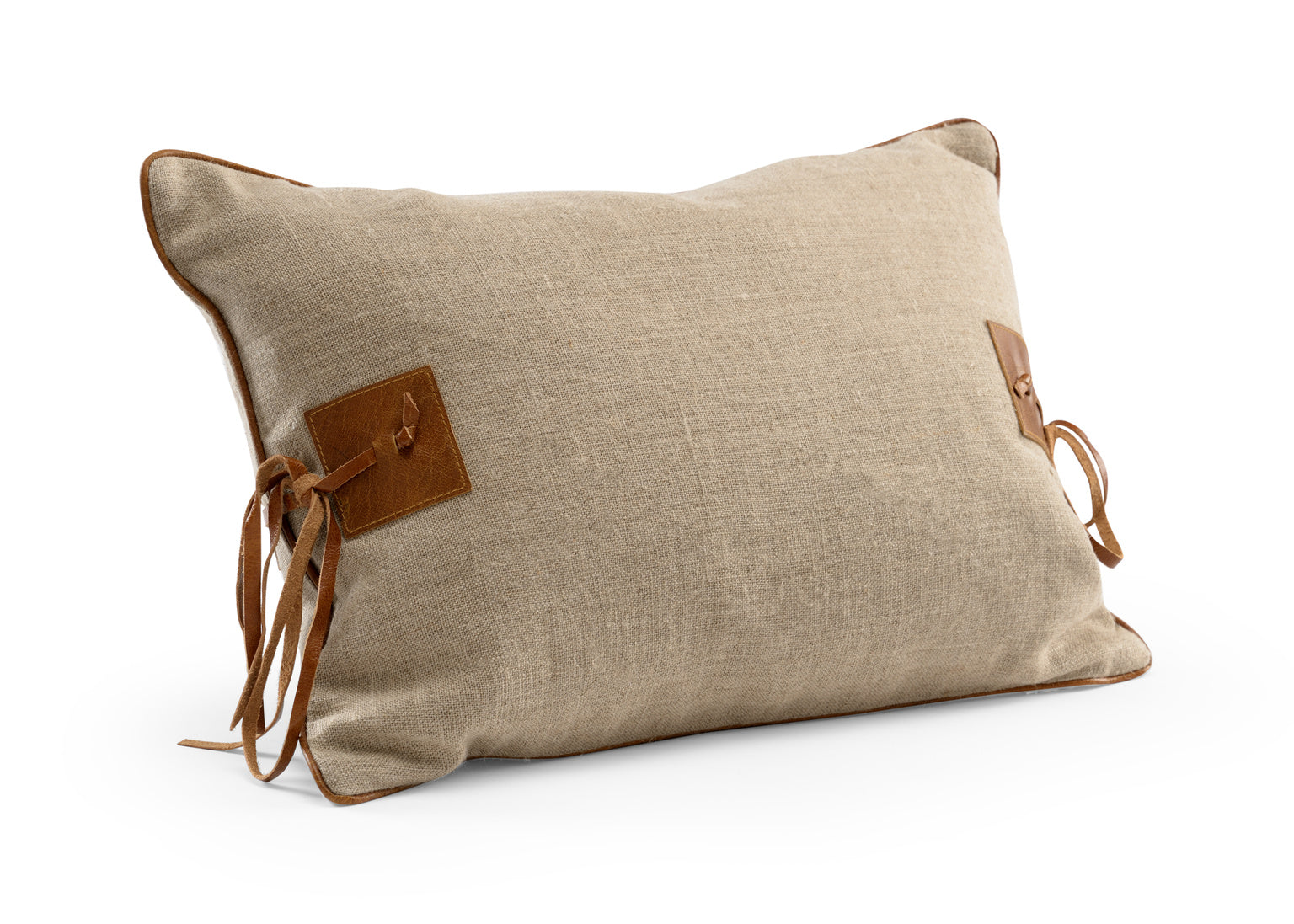 Natural Linen Fabric With Tan Leather Accents Natural Linen Backing With Side Zipper And Down And Feather Pillow Insert