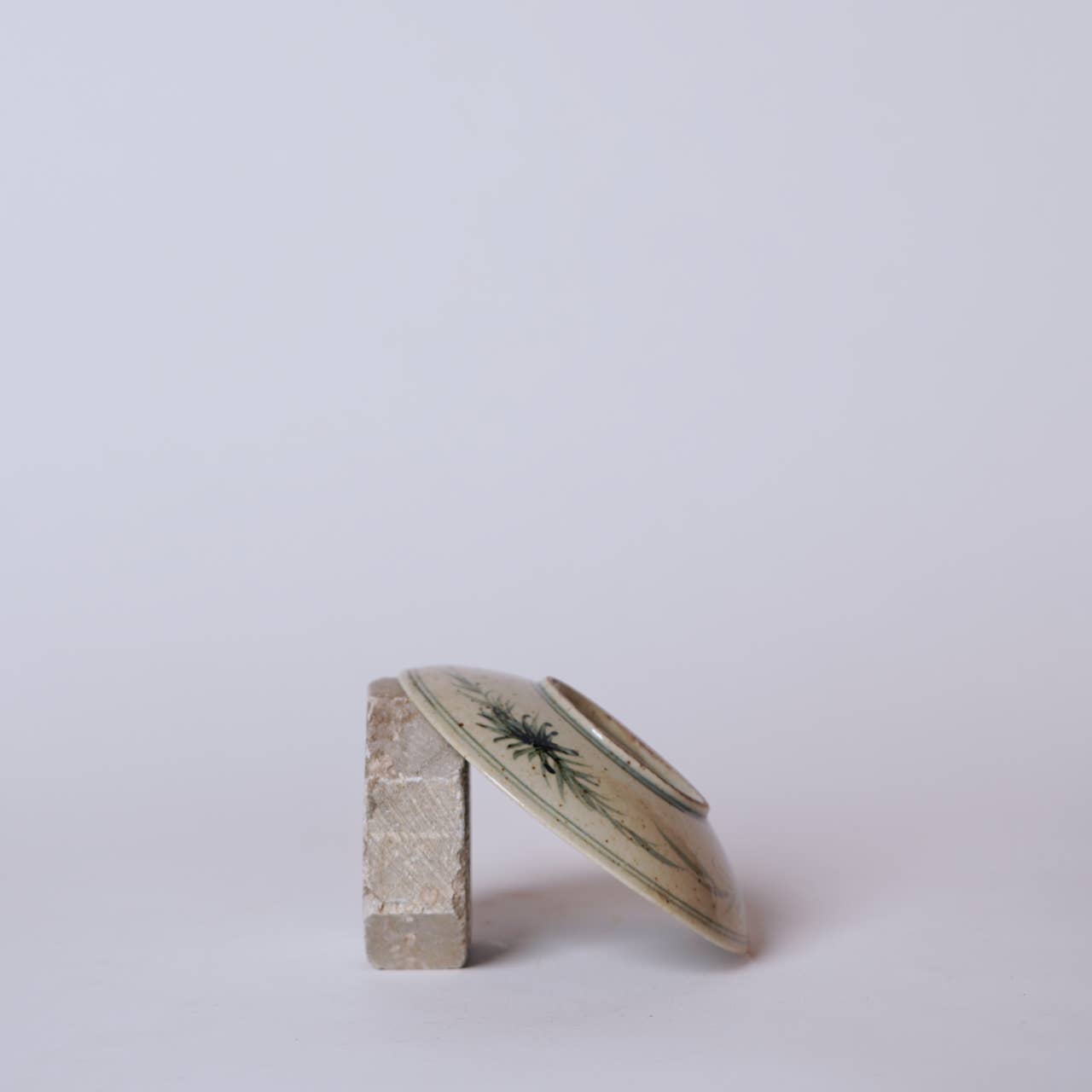 Cobalt Guild offers an assortment of blue and white porcelain vessels from the antiques markets of Jingdezhen, a town long distinguished by imperial patronage. This piece is a small dish with an auspicious three friends motif, depicting pine, plum, and bamboo, 6 3/8" x 1 3/8"